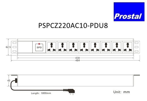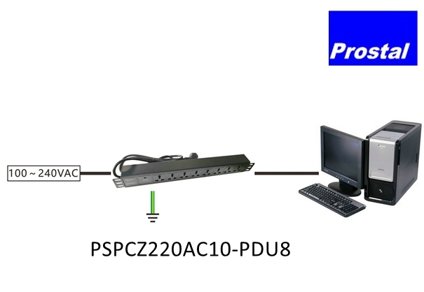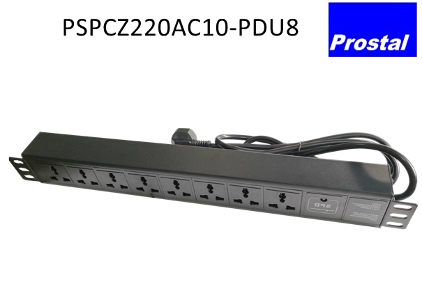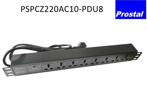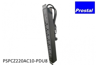 PSPCZ220AC10-PDU8 is 8-port Rack-mount Surge Protection Power Strip. It is made of high-quality zinc oxide material, effectively suppressing and discharging surge currents in power lines.
