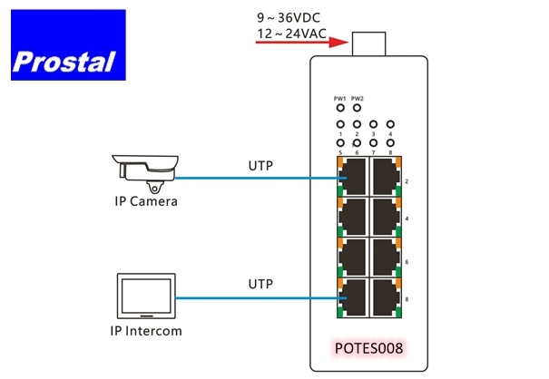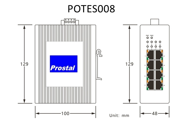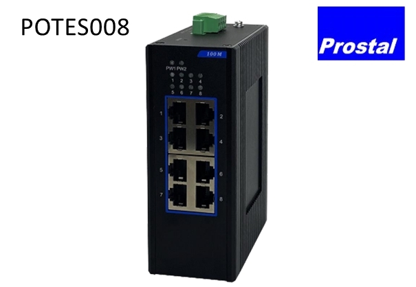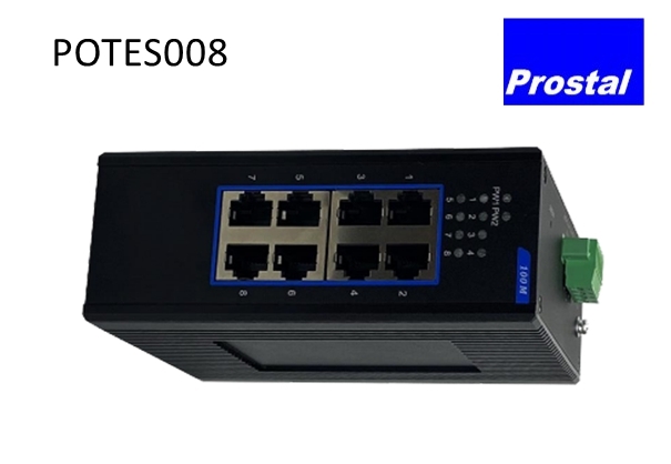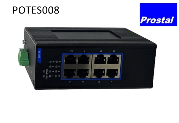 POTES008 Industrial Ethernet Switch is an unmanaged industrial Ethernet switch that supports 8 10/100Base-TX ports. With a fanless, low-power design and a wide operating temperature range, it features surge protection for the ports, making it especially suitable for high-traffic, real-time outdoor environments. This switch is widely applicable in industrial automation control, road networks, campuses, residential communities, rail transit and power monitoring.