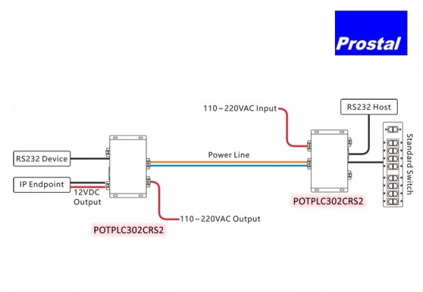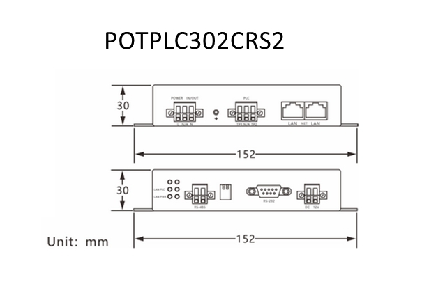 POTPLC302C-RS2 is a high-speed power line Ethernet extender that can transmit power, Ethernet, and RS232 serial data signals over a 2-wire power line, with a transmission distance of up to 600m.