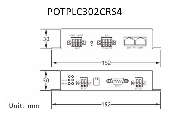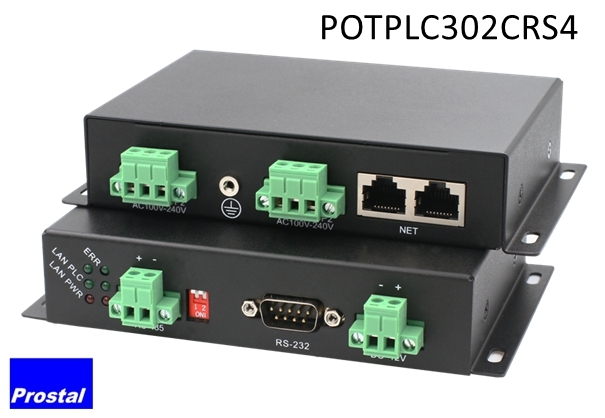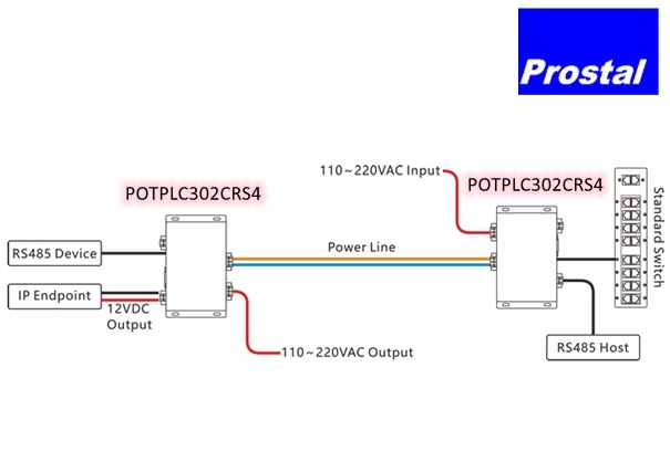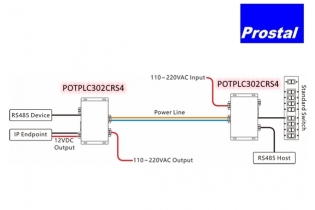 POTPLC302C-RS4 is a high-speed power line Ethernet extender that can transmit power, Ethernet, and RS485 data signals over a 2-wire power line, with a transmission distance of up to 600m.